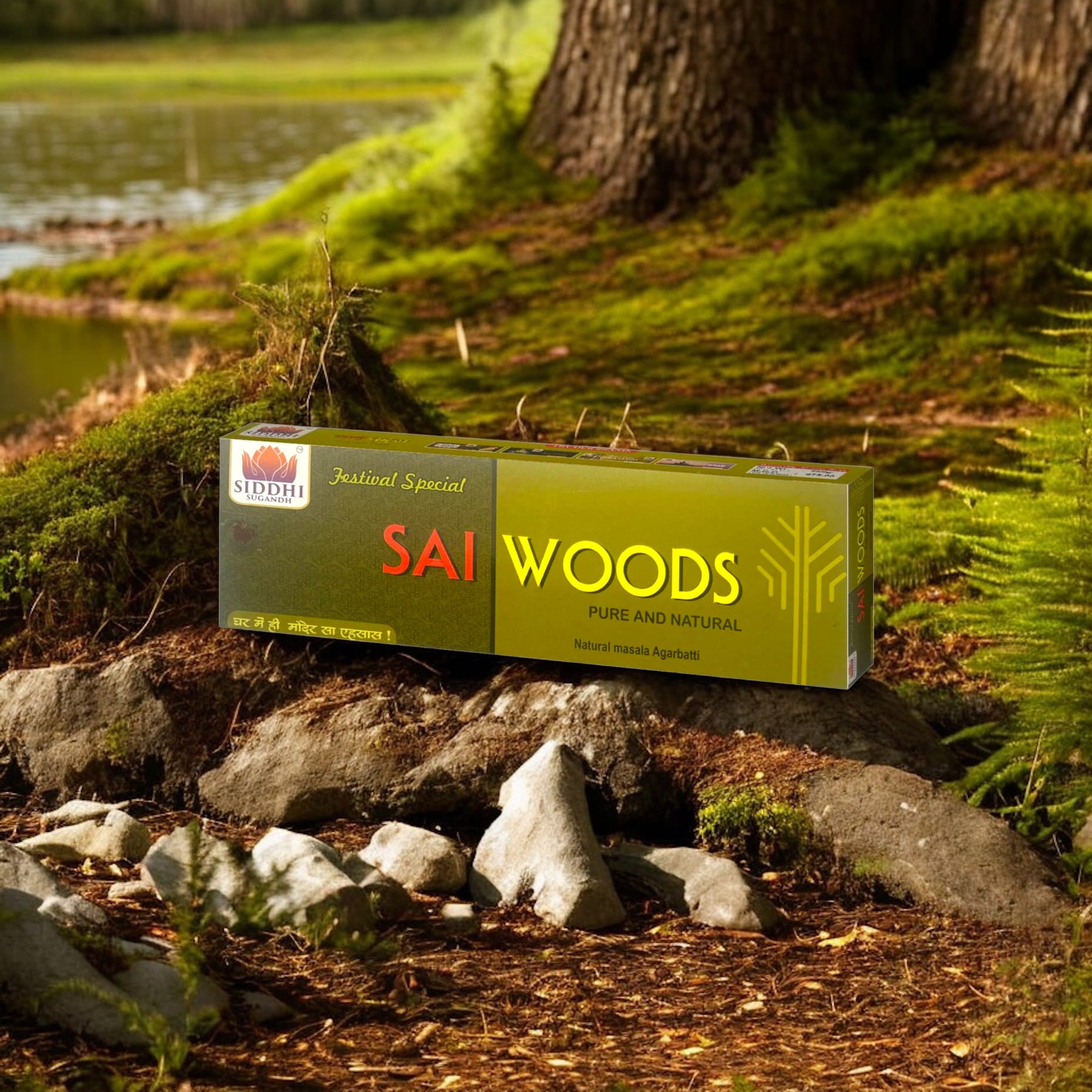 The deep, woody essence of Sai Woods Incense creates a serene and meditative atmosphere for prayers and relaxation.