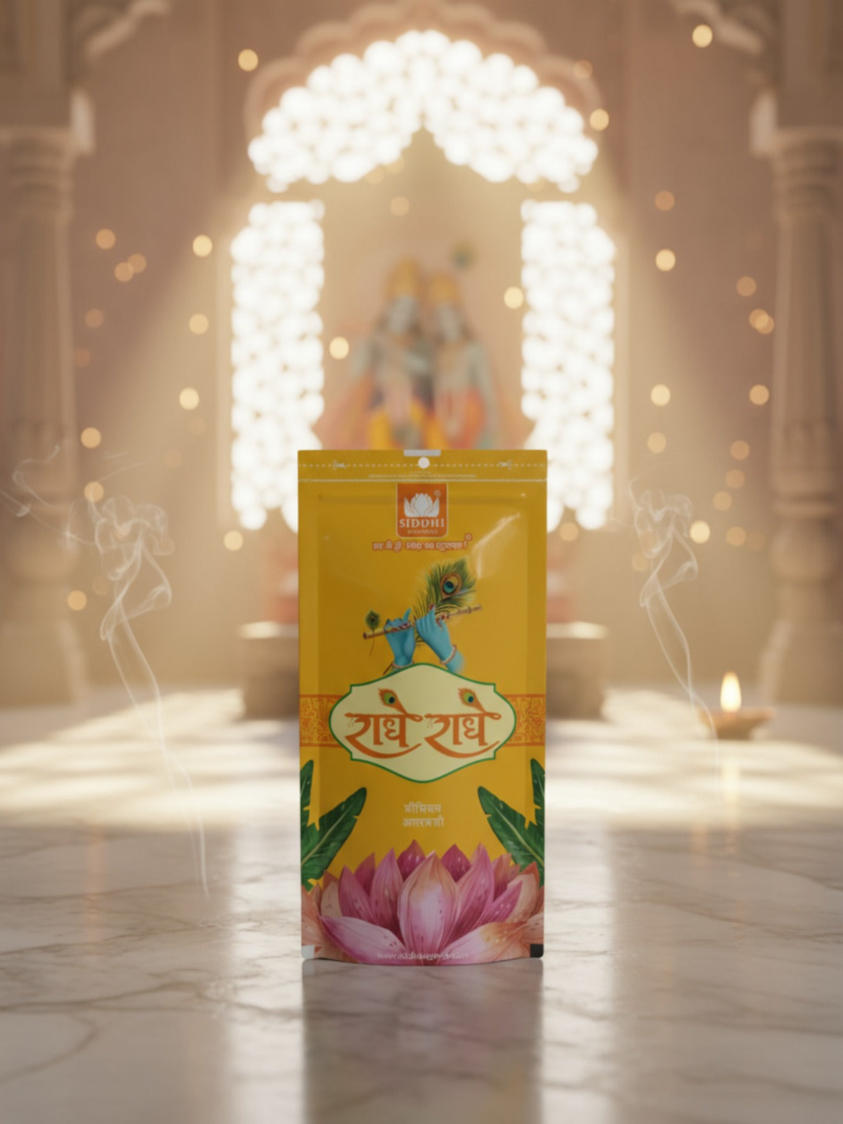 Siddhi “Radhe Radhe” incense sticks are crafted with devotion to spread positivity and peace. The soothing floral aroma connects you with divine love and spiritual energy.