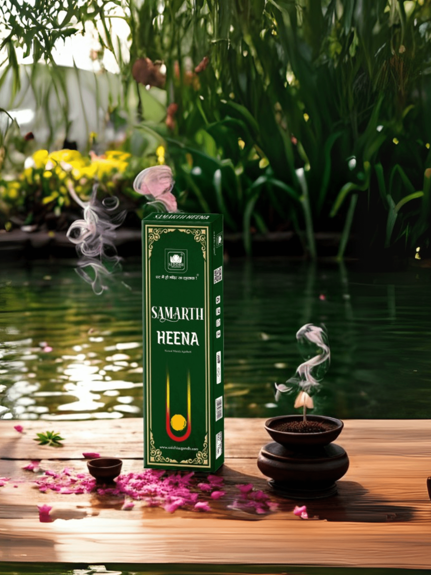 Heena has been a symbol of Indian heritage and purity, and its earthy fragrance is perfect for use during morning prayer, satsangs, or evening meditation. Its slow-burning nature ensures a long-lasting spiritual experience. Bring home the power of tradition with Samarth Heena.
